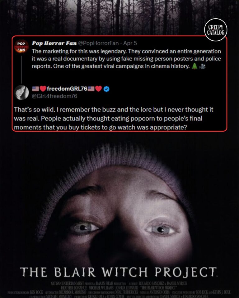 Ah yes………. the absolute chaotic masterpiece that is The Blair Witch Project (and its GENIUS marketing)….Back when the internet was just credible enough to fool everyone and just sketchy enough to make it believable. The times of Rotten.com and NAPSTER. This movie had us all fooled, This wasn’t just promotion, it was a full-blown psychological
